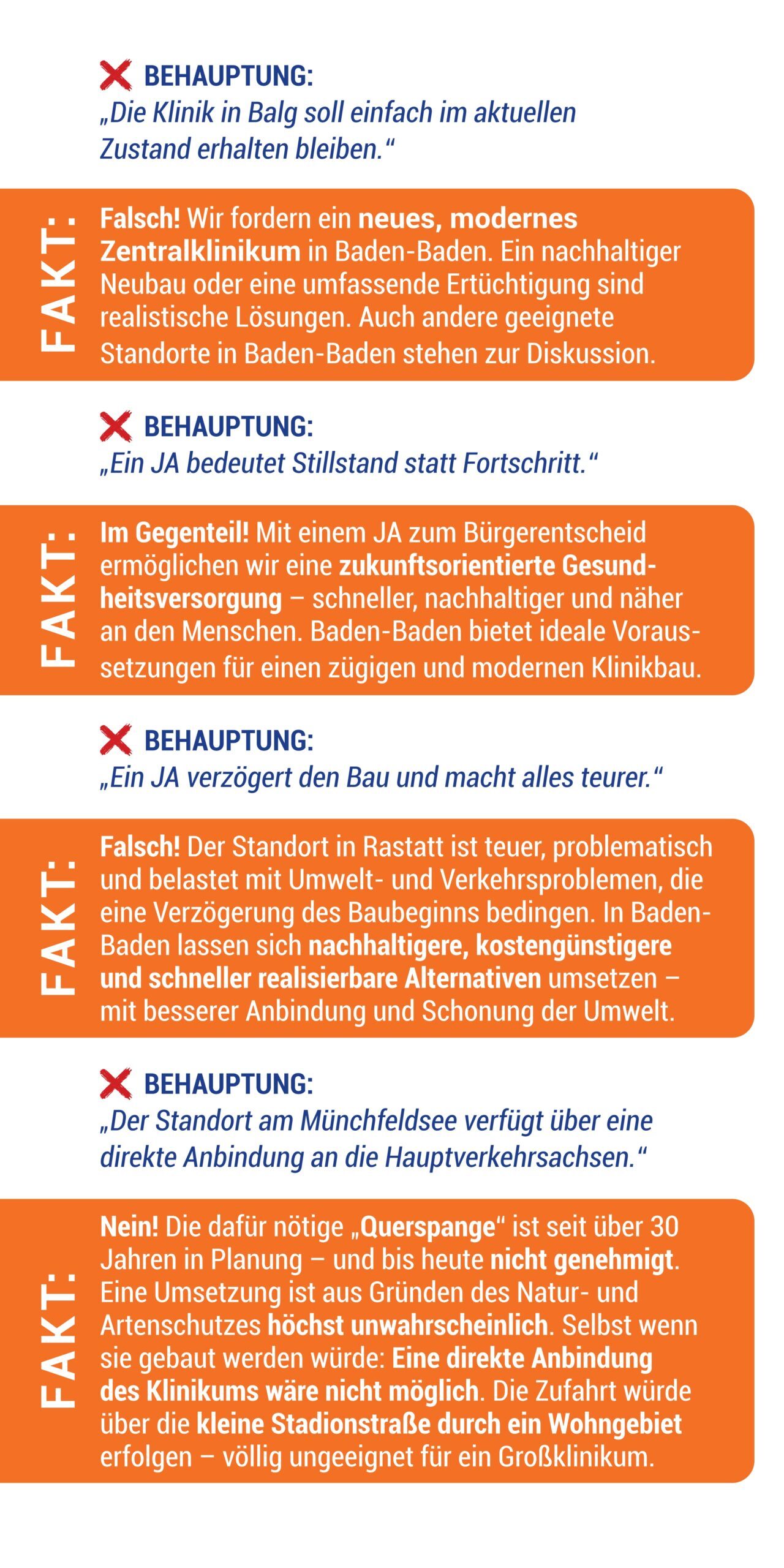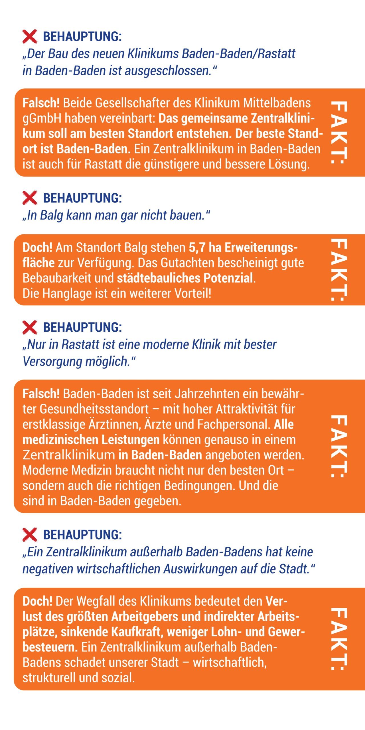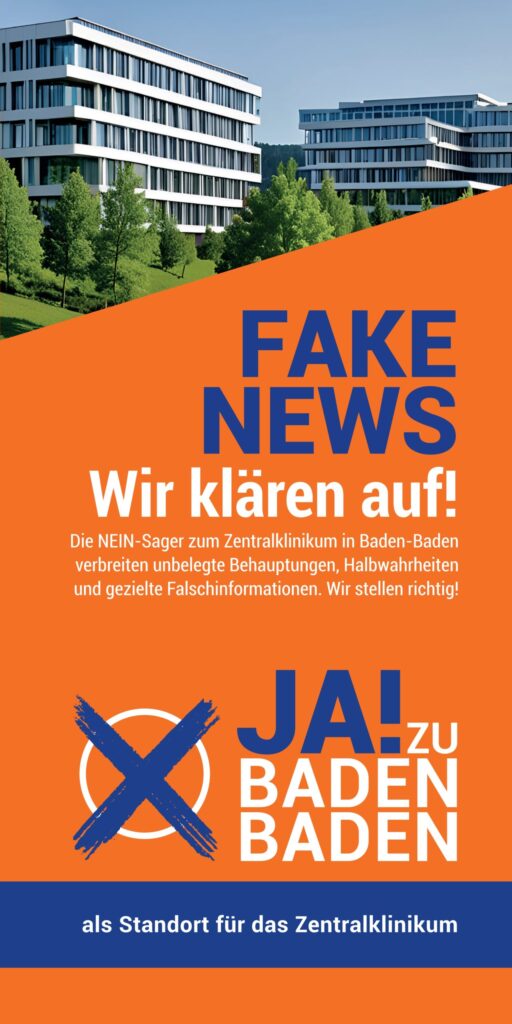 Die NEIN-Sager zum Zentralklinikum in Baden-Baden arbeiten mit unbelegten Behauptungen, Halbwahrheiten und gezielten Fehlinformationen. Wir stellen richtig!